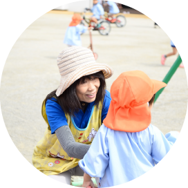 以前、保育中に少し頭が痛いなと思っていたことがありました。すると、クラスの子が私の様子を見て「先生、大丈夫?無理しないでね」と言ってくれたんです。ささいな変化に気づいてくれたことも、やさしい言葉をかけてくれたことにも驚き、嬉しくなってその子を抱きしめました。子どもたちには、そんな風にいつまでも相手にやさしい言葉をかけられる子でいてほしいと思いましたし、私たち大人もそうありたいですね。困っている人がいたら、自然に手を差し伸べられる園であったらいいなと思っています。