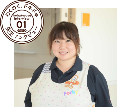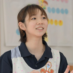 保育教諭1年目。短大在学中にあすなろこども園でボランティアをし、この園の雰囲気に惚れ込んだ。大事にしているのは「いつも笑顔でいること」。